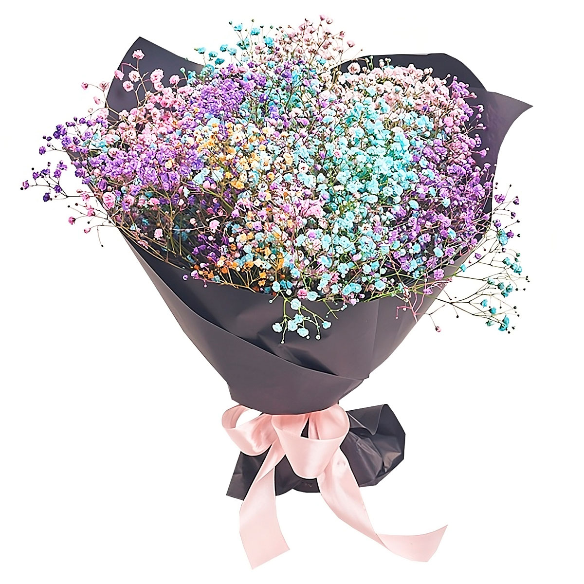 Гипсофила белая, желтая, розовая, сиреневая, голубая. Упаковка (лента, пленка, крафт, сетка, пленка матовая)