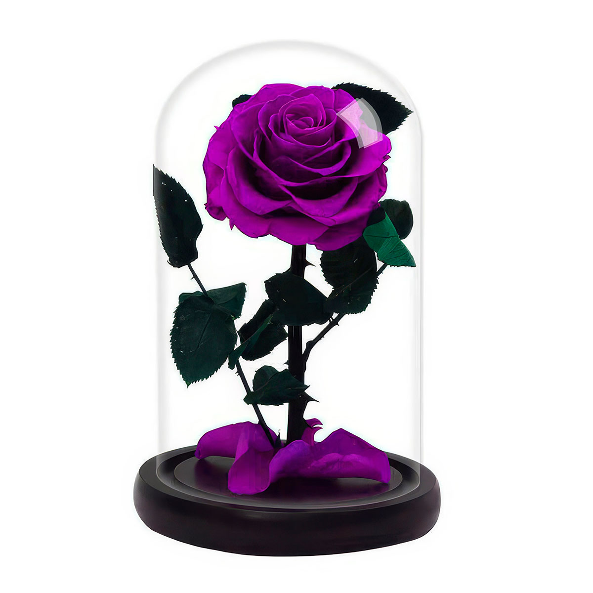 Стабилизированная вечная роза в колбе фиолетовая.