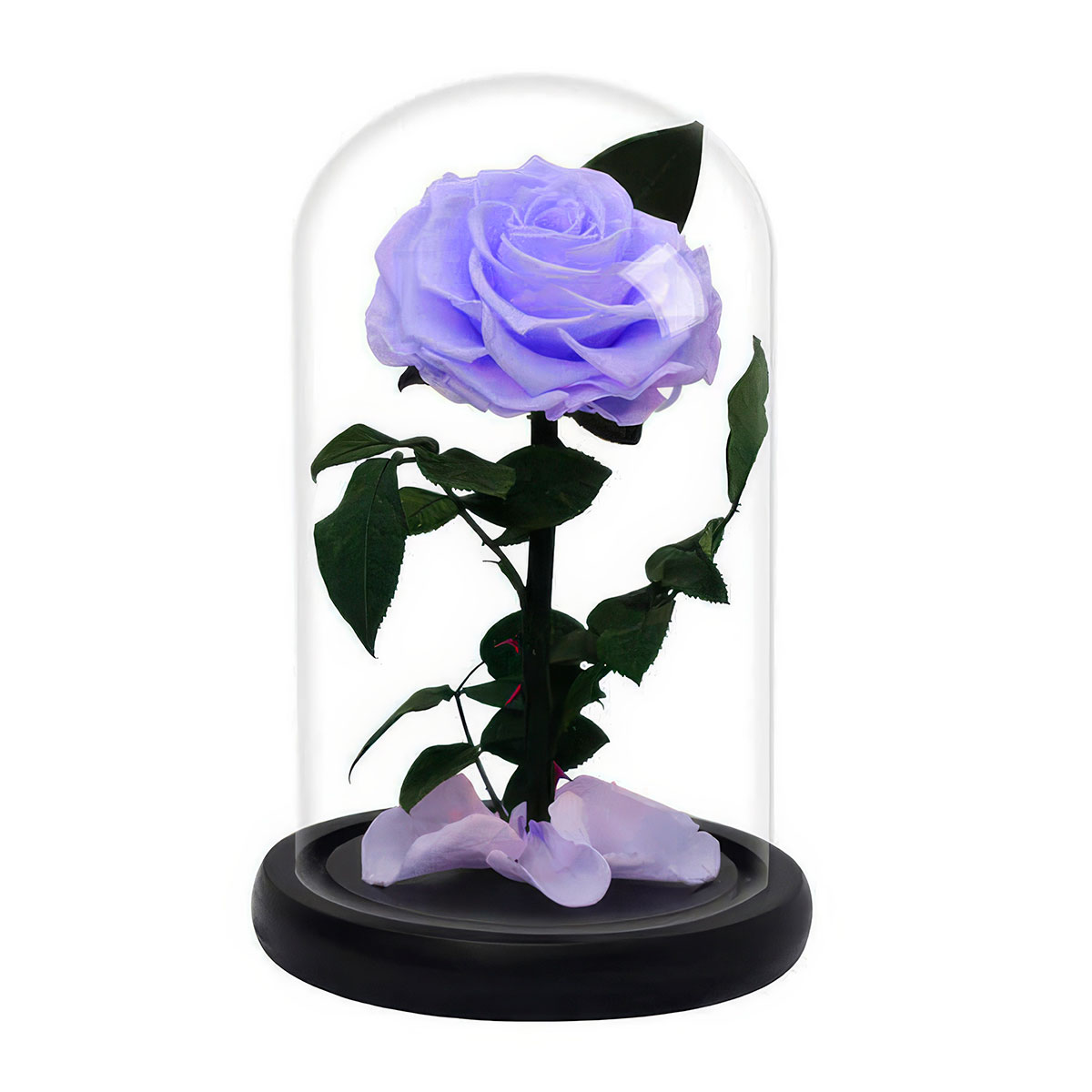 Стабилизированная вечная роза в колбе сиреневая.