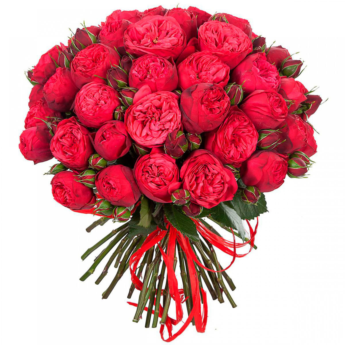 Розы Пионовидные кустовые красные ждет вашего заказа: чтобы заказать цветы, заполняйте заказ на сайте за одну минуту. Также можно выбрать для заказа в Артёмовске по телефону +7(993)431-06-99 или по почте kate@loveflowers24.ru.